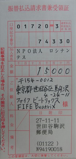 ライブ会場などでのミニCD売上金全額(2011年4月10日から5月15日まで)を世田谷駒沢郵便局から日本赤十字へ送りました。